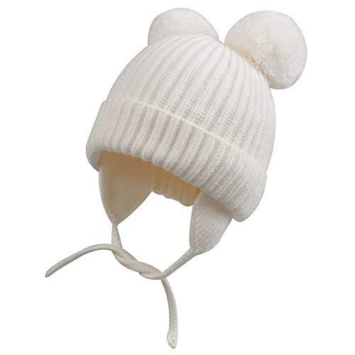 Amazon Co Jp 赤ちゃん ニット帽 ベビー 帽子 秋冬 肌さわり快適 無地 耳保護付き ニットキャップ ポンポン撮影 手編み ハット イヤーパッド 耳あて 裏起毛 二重保温 子供 キーズ 春 Seranier 服 ファッション小物